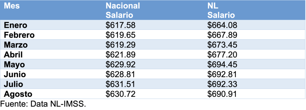 El salario diario integrado promedio de los trabajadores asegurados en el IMSS en Nuevo León fue de $692.33 en julio, un 8.1% superior al del mismo mes de 2024.