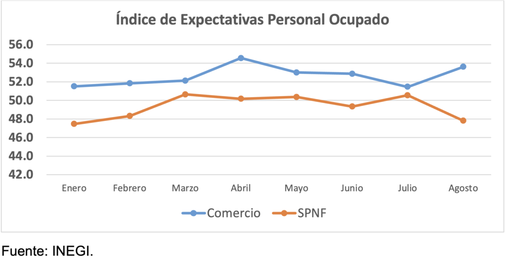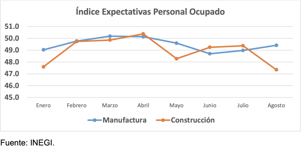 Las expectativas de contratación continúan a la baja en la construcción y en los servicios privados no financieros. Solo las del comercio registraron en agosto pasado un repunte, y las de manufactura ligeramente.
