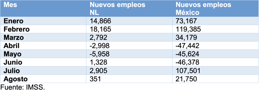 Nuevo León, a diferencia del resto del país, en lo que va del año solo un par de meses ha padecido una caída en el empleo formal. Aun cuando la tasa de desempleo es ligeramente superior en el estado.