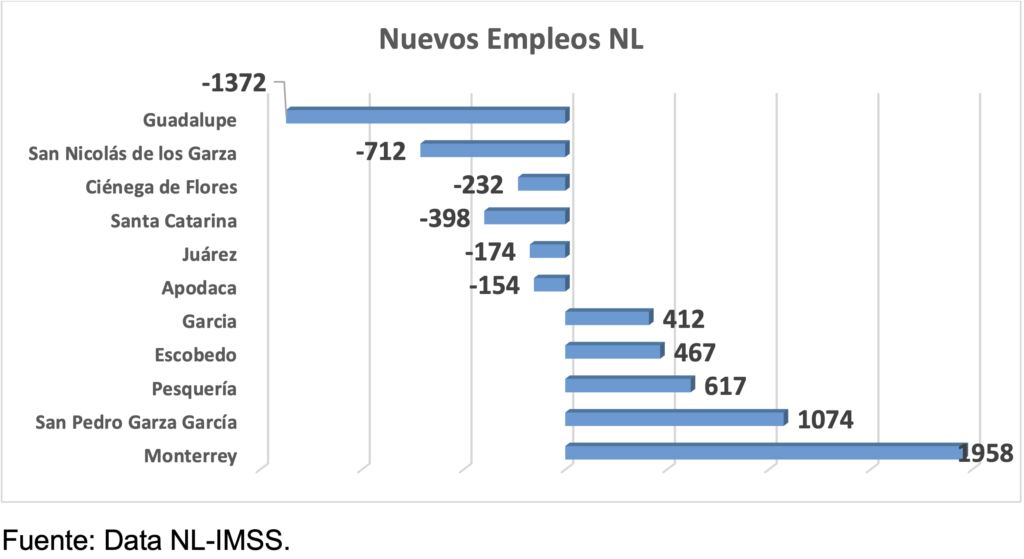 Guadalupe fue el Municipio del Área Metropolitana de Monterrey y del estado con peores bajas netas de trabajadores formales, con -1,372 puestos de trabajo, respecto al mes anterior.