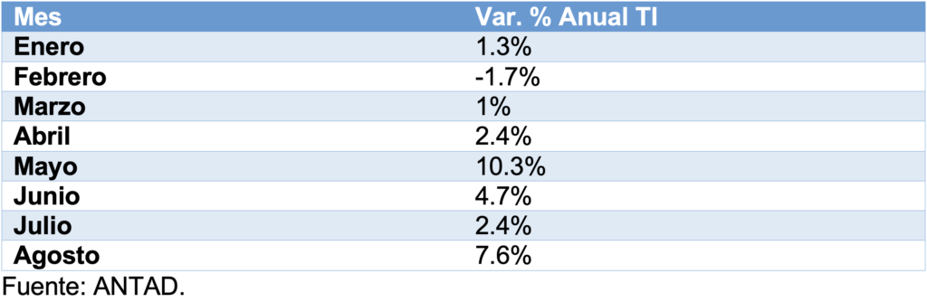 Por el contrario, a nivel nacional la industria automotriz tuvo en julio un alza anual de 1.2%, fue la 2da peor tasa en el año, y también una baja mensual de -12%.