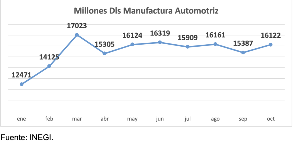 Las exportaciones manufactureras siguen mostrando resiliencia y manteniendo a flote a la economía mexicana. En octubre tuvieron un repunte mensual de 17.7%.