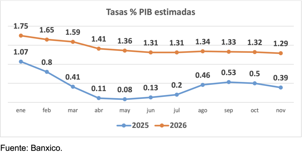 Según los analistas del sector privado, consultados por Banco de México en noviembre, las expectativas del PIB 2026 es que mejore su tasa de crecimiento y pueda alcanzar el 1.29%.