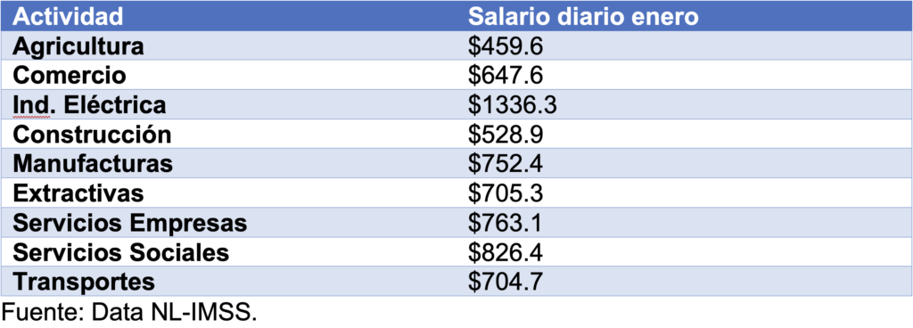Por actividad productiva en Nuevo León, los salarios de los trabajadores formales en enero fueron:
