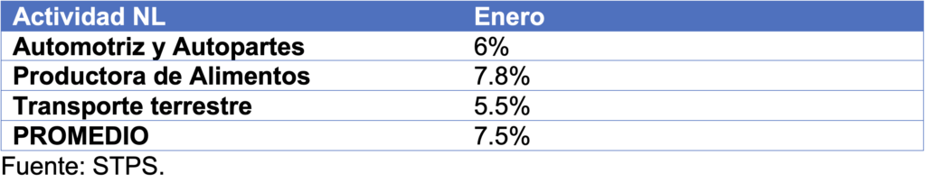 En Nuevo León, las revisiones salariales de jurisdicción federal registradas en enero derivaron en alzas promedio de 7.5%. A nivel nacional, promediaron un aumento de 7.9%.