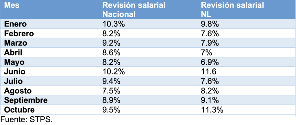 Esos salarios superaron en 7.3% y 7.8%, a los que había en el mismo mes del año pasado, en México y Nuevo León, respectivamente. Porcentajes superiores a la tasa de inflación registrada.