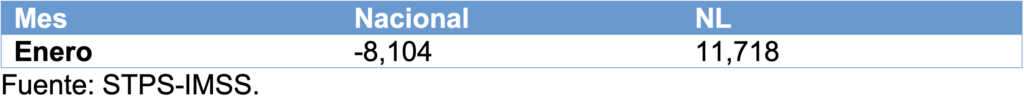 Por actividad productiva, en enero las actividades productivas con saldos netos mensuales positivos fueron la industria de la transformación y de la construcción, tanto en el país como en Nuevo León.