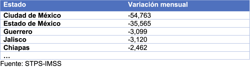 Además de Ciudad de México y Estado de México, otros estados con bajas netas de trabajadores en enero fueron: