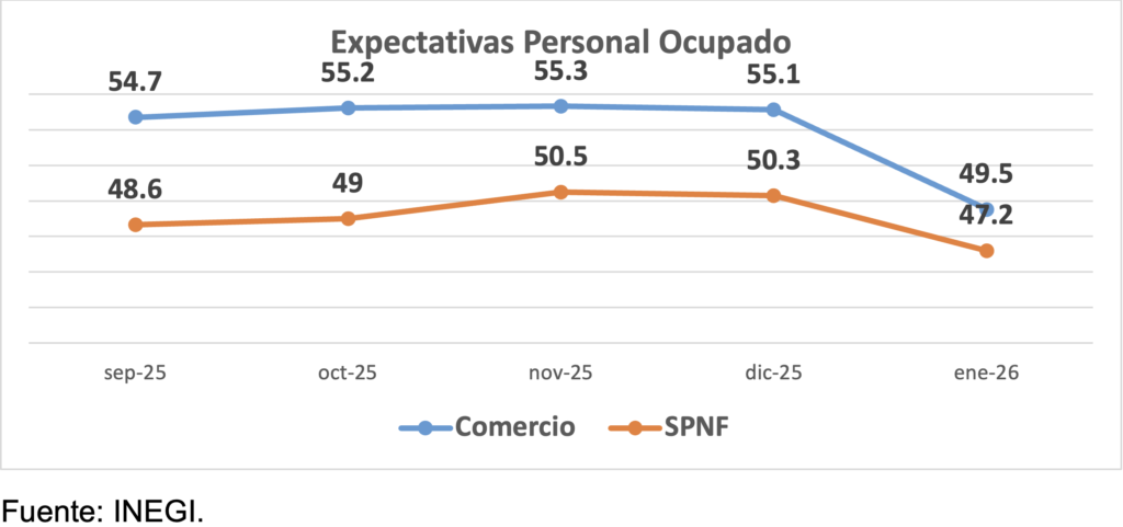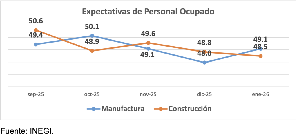 Las expectativas de contratación de personal disminuyeron en enero; solo los empresarios de la manufactura expresaron un alza moderada, aunque las mantienen en zona pesimista –inferior a 50 puntos–.