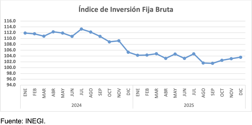La caída en la inversión fue producto de la falta de certidumbre jurídica, de seguridad pública y hasta comercial, que prevalecieron en 2025. Así como también el alto costo del crédito.