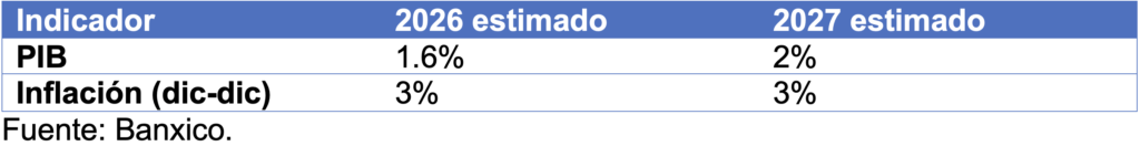 Por su parte, Banco de México pronostica una tasa de inflación optimista –previsiones dadas a conocer previo al conflicto de Oriente Medio– de 3%.