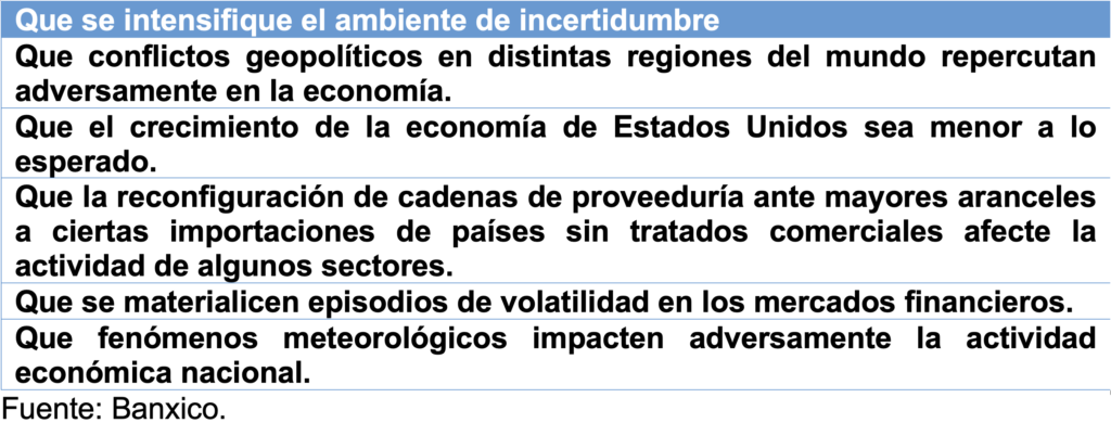 Para 2026, entre los riesgos para el crecimiento de la actividad económica detalla los siguientes: