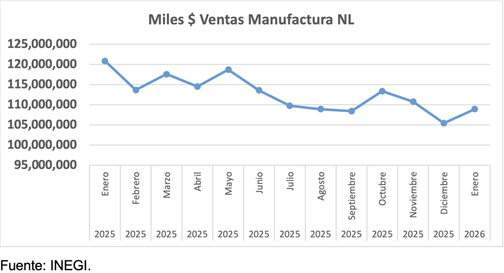 La industria manufacturera de Nuevo León padeció en enero una caída en las ventas de sus productos de -10% anual, pese a una variación mensual positiva de 3.3%.