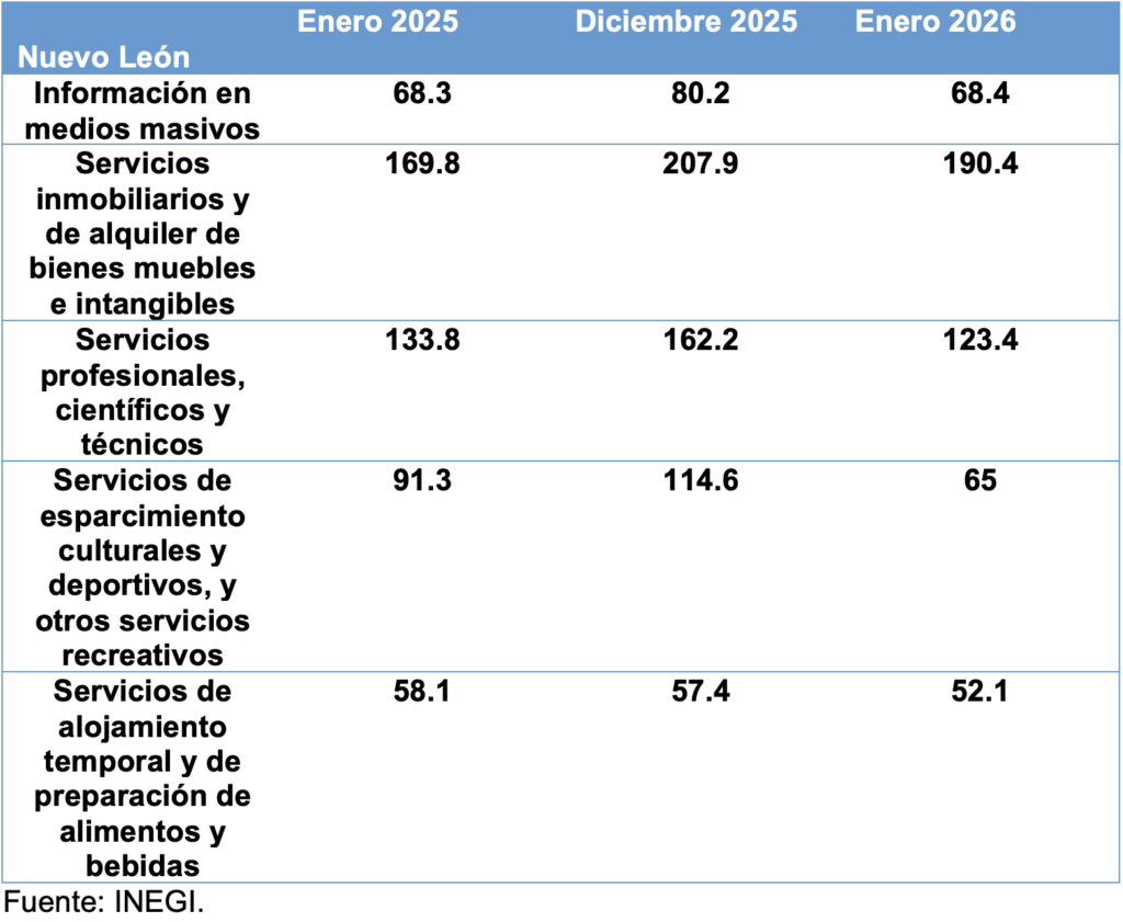 En Nuevo León, también los servicios privados no financieros iniciaron el año con un desempeño débil; solo uno de los subsectores evaluados tuvo en enero un aumento anual.