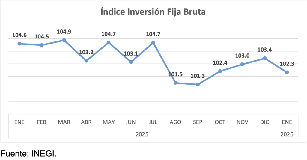 La inversión, la variable con mayor impacto en el PIB, luego de 3 meses de alzas mensuales consecutivas, en enero vuelve a caer. El índice de inversión fija bruta cayó en enero -2.2% anual y -1.06% mensual.