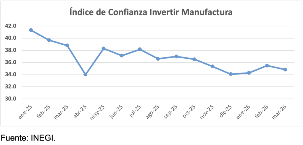 Lo preocupante es la disminución que registró el índice de confianza para invertir, que manifestaron en marzo los empresarios de la manufactura, según INEGI. Y cuyo valor se encuentra en zona pesimista.